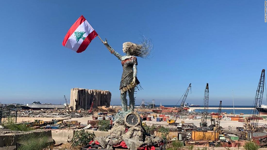 العلم اللبناني مرفرفا فوق انقاض الدمار في المرفأ