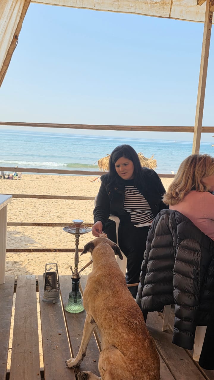كان أبو سليم ملتفّاً بعباءة في مدخل المبنى ينتظرهما. وبكثير من التأنّي انتقلا وإياه الى السيارة وكانت برفقتهم أيضا ابنته تُحاول اسناد والدها برعاية وحنان ومع كثير من الإحتضان. وما هي الا دقائق معدودة،تتابع دانية، حتى أدركوا الرملة البيضاء حيث جلسنا والبحر الهادئ أمامنا والرمال الذهبية تفترش الأرض فتناولنا أحاديث شتّى ونحن نلتهم اللحم بعجين الذي توافقنا على أن يكون مع جلستنا الصباحية.
