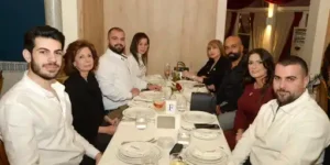 … جورج و رجا سالم يقطعان كعكة العيد و حولهما:ريف،لورا،مروان،د.ميرنا و