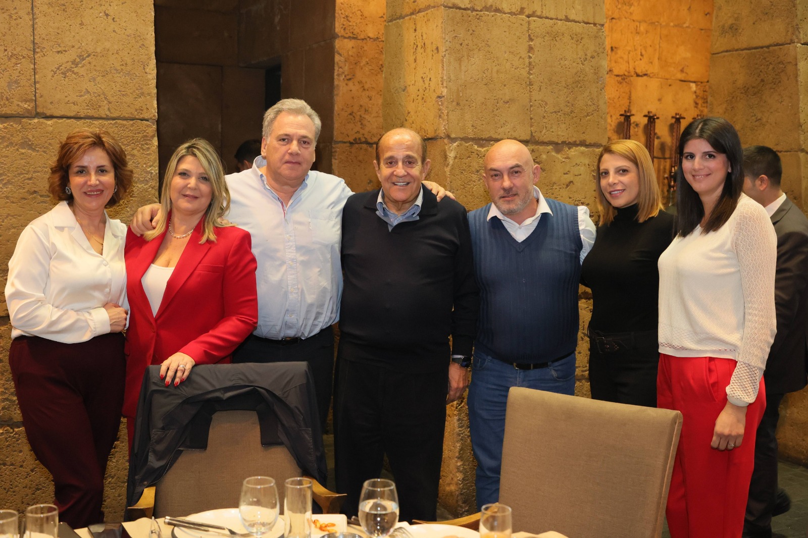 روجيه نسناس يتوسط من اليمين أنطوني فغالي، سارة كريكير فغالي، كارل كريكر، ملاك حداد، الياس يعقوب، جوزف فرح وجنين الحاج