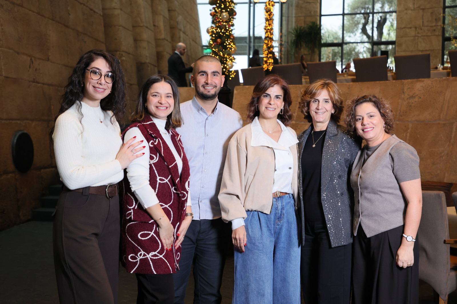 روجيه نسناس يتوسط من اليمين: ريتا عبود، جيسيكا نمور، ريشار نعمة، يوسف مراد، جويس طرابلسي وجنين متري