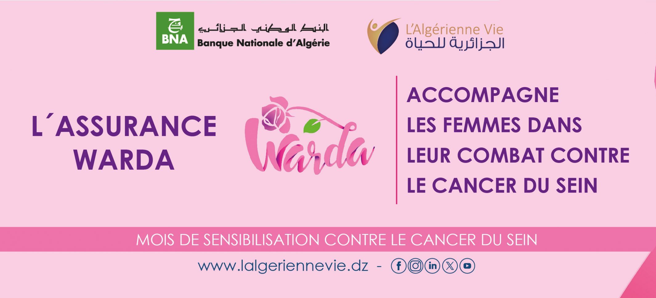 البنك الوطني الجزائري (BNA) والشركة الجزائرية للتأمين على الحياة (AGLIC) قدّما خصمًا بنسبة 10% على قسط تأمين “وردة” ضد سرطان الثدي،و يسري هذا العرض طوال الشهر الحالي (تشرين الأول 2025) .