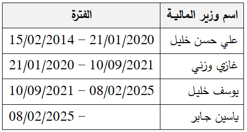 في ما يلي، ترتيب لوزراء المالية الشيعة منذ 2014: