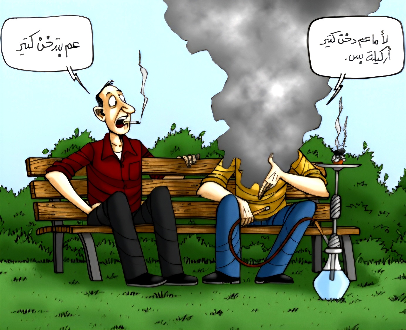 جذب نظري -قبل عقدين- في منتدى حي حلبي راقٍ، قدوم (استشاري) الأراجيل الذي لم يخطّ شارباه بعد، إلى أحد الزبائن الذي اشتكى أن (النَفَس) غير مضبوط، فأتى نفسُه ليضبط له (نفَسه)، ويعدّل مزاجه، فراح يضع الجمر ويسحب ثم ينفخ حتى تم ضبط الوضع، ومن فمه نقل (الخرطوم) إلى فم الزبون، الذي جرّبه وأبدى إعجابه وشكره العميق.