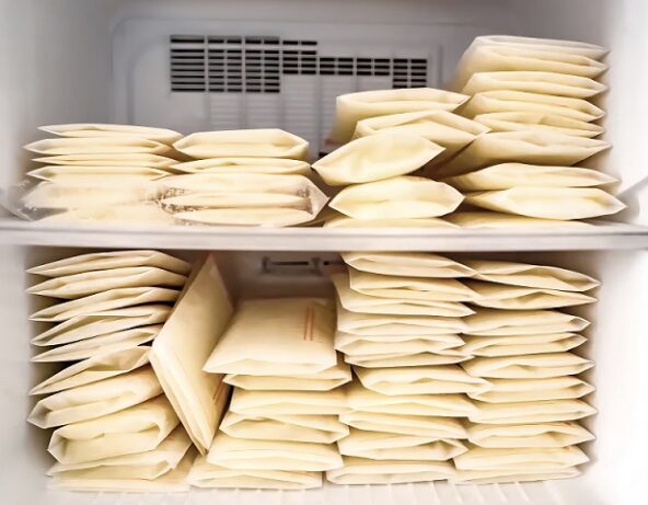 – يجب تبريد الحليب على الفور من أجل التخزين: بزجاجات نظيفة ومغلقة وآمنة أو أكياس حليب معقمة. يوضع على كل عبوة تاريخ السحب، وتستخدم خلال 4 ساعات في حرارة الغرفة (حتى 25 درجة مئوية / 77 فهرنهايت)، أما في الثلاجة فيمكن تخزينها حتى 4 أيام. وفي المُجمّدة (الفريزر): يمكن التخزين لـ 6 أشهر تقريباً؛ ويُسمح باستخدامه لمدة تصل إلى 12 شهراً.
