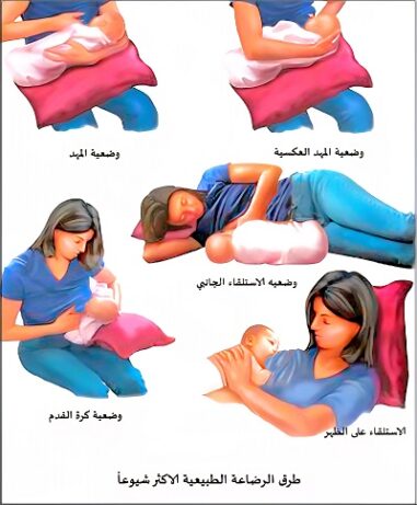 – ومن أجل أن يبدأ منعكس نزول الحليب: تدلّك الثدي بلطف، أو تنظر إلى صورة طفلها، أو تشم قطعة من ملابسه.