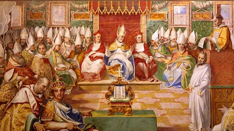 دخلت الكنيسة القرن الرابع وهي مثقلة بجراح اضطهادات طويلة، وما إن تنفّست الصعداء بعد مرسوم ميلانو حتى ظهرت أزمة جديدة أخطر من السيف: أزمة فكرية تهدد صميم الإيمان المسيحي. فقد ادّعى آريوس أن الابن مخلوق وليس مساوياً للآب، وأن المسيح ليس أزليًا بل بداية مخلوقة. هذا الطرح لم يكن مجرد اختلاف لاهوتي، بل كان انقلابًا على سرّ التجسّد والخلاص. ووسط الفوضى التي أحدثها الانقسام، دعا الإمبراطور قسطنطين إلى مجمع مسكوني في نيقيا سنة 325 لتوحيد الكنيسة حول نصّ جامع يضع حدًا للارتباك العقائدي. هكذا وُلد قانون الإيمان النيقاوي، لا كصياغة فلسفية بل كوثيقة دفاعية تُعلن “نؤمن بإله واحد…” وترفض أن يكون المسيح أدنى من الآب، مثبتة أن “الابن مولود غير مخلوق، مساوٍ للآب في الجوهر“. أهمية هذا الحدث تكمن في أنه لأول مرة تكتب الكنيسة عقيدتها الأساسية في صيغة جماعية، متجاوزة اختلافات المناطق واللغات والثقافات، ومتحدّة حول سر التجسّد، وكأنها تقول: لا وحدة للكنيسة بدون وحدة الإيمان.