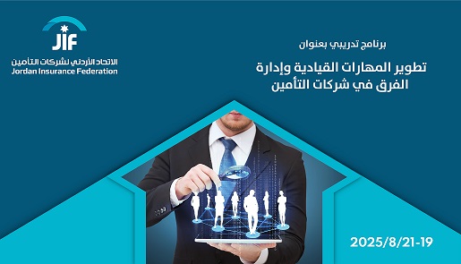 يبقى أن نشير الى أن هذا البرنامج التدريبي هو أحد برامج الخطة التدريبية للاتحاد الأردني لشركات التأمين لعام 2025 التي تهدف إلى تدريب الكوادر العاملة،لا سيما مدراء الأقسام، المشرفون، القادة المستقبليون وجميع الموظفين الراغبين في تطوير مهاراتهم القيادية، ومسؤولو الفرق في المؤسسات وقادة الاعمال والمهتمون بموضوع البرنامج التدريبي. اذ استقطب حتى تاريخه 34 مشاركاً يمثلون 12 شركة تأمين محلية، ومشارك واحد وهو وسيط تامين،و آخر من شركة “ترست” العالمية للتامين من فلسطين.