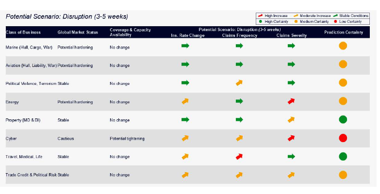 وفي الوقت نفسه، قد تتراجع القدرة الاستيعابية لأسواق إعادة التأمين في بعض القطاعات المتأثرة، مع تزايد الحذر لدى شركات إعادة التأمين في ظل ارتفاع مستويات الأخطار الجيوسياسية. كما يمكن أن يؤدي استمرار النزاع إلى اضطرابات في سلاسل الإمداد العالمية، بما يرفع التكاليف التشغيلية ويزيد من احتمالات مطالبات انقطاع الأعمال في العديد من الأسواق، لا سيما في منطقة الشرق الأوسط.