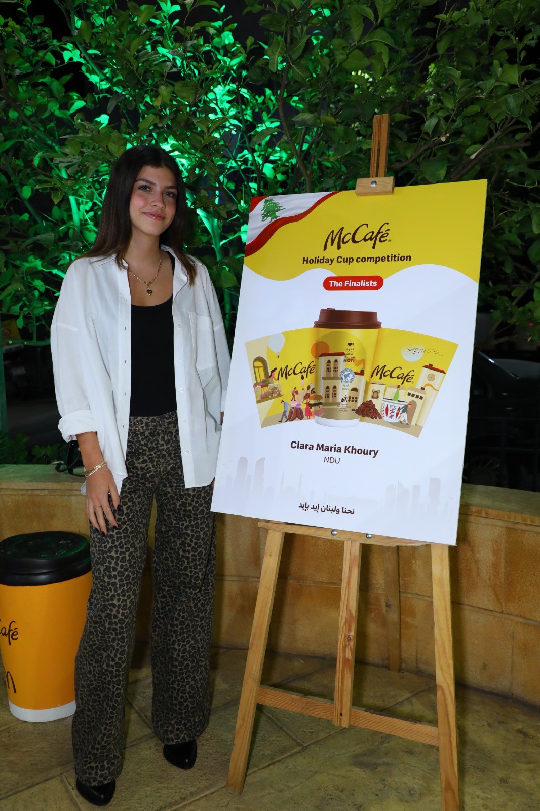 الطالبة كلارا ماريا خوري من جامعة سيدة اللويزة (NDU) فازت بمسابقة 2025 McCafé Cup Design Competition، خلال حفل أقيم في ماكدونالدز – بدارو، ليُعتمد تصميمها على أكواب McCafé في كل الفروع في لبنان خلال شهر كانون الأول 2025.و كانت مسابفة هذا العام قد