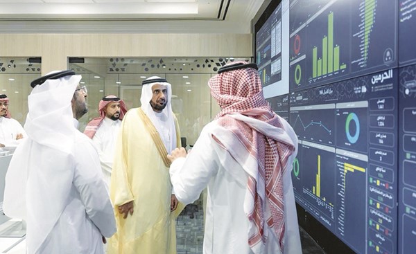 وزير الحج والعمرة د.توفيق الربيعة أثناء تدشين المركز الهندسي الذكي للقيادة والتحكم في المسجد النبوي الشريف بالمدينة المنورة