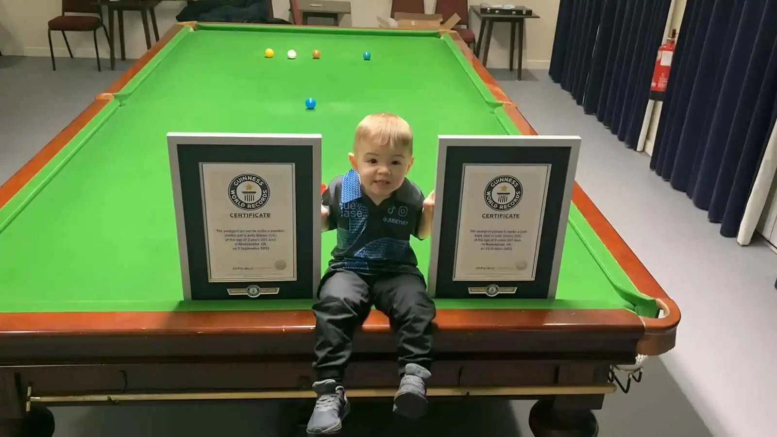 وذكرت «بي بي سي» أنه في 12 أكتوبر (تشرين الأول) 2025، تمكّن الطفل جود أوينز، القاطن في مدينة مانشستر، من تنفيذ ضربة البلياردو الارتدادية بدقّة متناهية، وهو في عمر عامين و302 يوم. ولم يكن هذا إنجازه الوحيد، إذ سبقه قبل أسابيع قليلة تنفيذ ضربة «الإسقاط المزدوج في السنوكر» وهو في عمر عامين و261 يوماً.