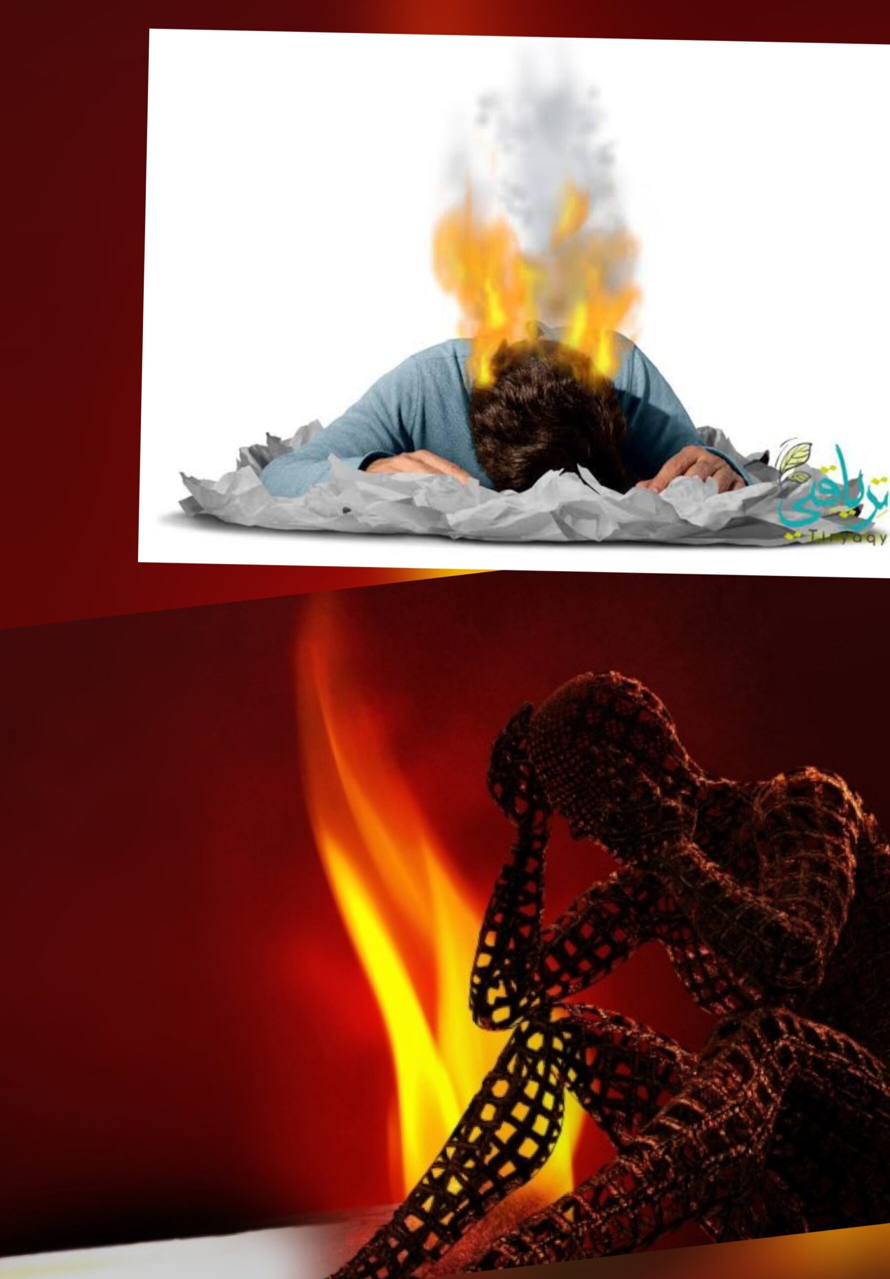 بديهي أن كل ذلك يحرق قلب المرء، أو يسبّب له أمراضاً لا حصر لها لاضطراب الأعصاب والمناعة (من الالتهابات والربو إلى الخبائث)، لأن العمل جوهرُ حياته، وقد يؤدّي إلى (متلازمة الاحتراق النفسي Burnout Syn.) (1)، التي تذوب فيها النفس على حدّ قول مجنون ليلى العامرية (قيس بن الملوّح) في العصر الأموي: