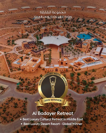مجموعة الشارقة تُثبت مجددًا ريادتها في مجال السياحة المستدامة والتجارب الفريدة، بعد حصولها على ثمانية ألقاب مرموقة ضمن جوائز الفنادق الفاخرة العالمية لعام 2025، على المستويين الإقليمي والعالمي. ويأتي هذا الإنجاز المتميز تتويجًا لتألق كل من منتجع نزل الرفراف في كلباء، ومنتجع البداير في الشارقة، ومنتجع الفايه في مليحة، ومطعم ويشي في نجد المقصر بخورفكان، ما يرسخ مكانة مجموعة الشارقة كمرجع عالمي في الرفاهية البيئية والأصالة الثقافية و تجارب الإقامة الفريدة التي تجمع بين الفخامة والطبيعة.